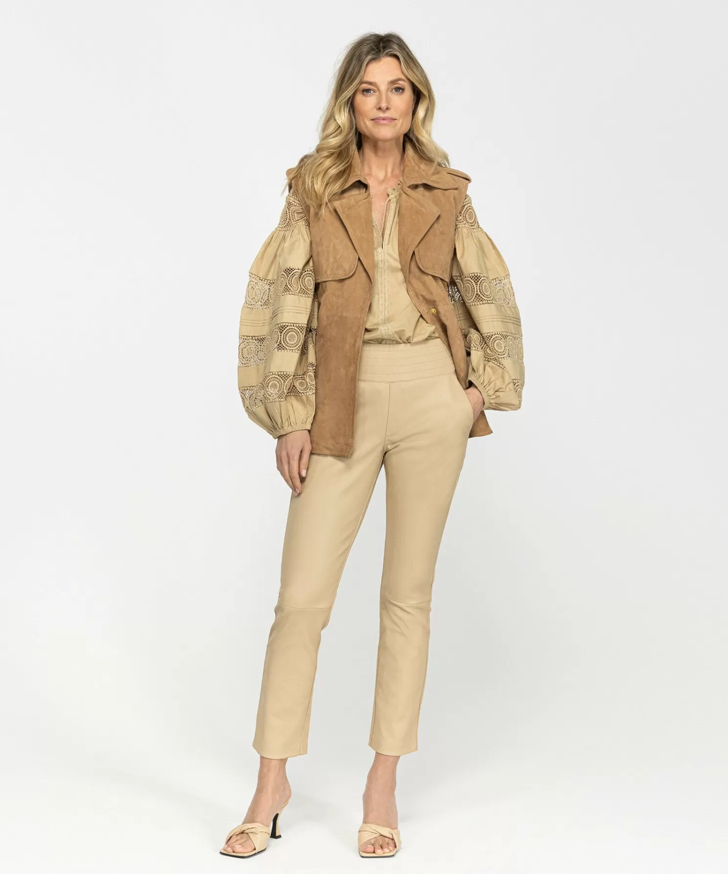 De Jasmijn Gilet Is Een Luxueuze En Stijlvolle Herfst- En Winter Item. Gemaakt Van Zachte Suede Stof, Heeft Deze Gilet Een Flatterende Pasvorm Dankzij Het Bijbehorende Centuur. Het Praktische Aspect Wordt Benadrukt Door De Twee Zijzakken, Waardoor Het Niet Alleen Trendy Maar Ook Functioneel Is. Met De Jasmijn Gilet Kun Je Eindeloos Combineren En Creëer Je Moeiteloos Verschillende Looks Voor Diverse Gelegenheden.